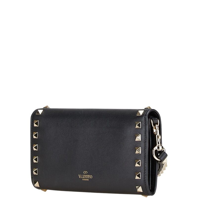 ヴァレンティノ ロックスタッズ 長財布 ブラック ゴールド レザー レディース VALENTINO 【中古】