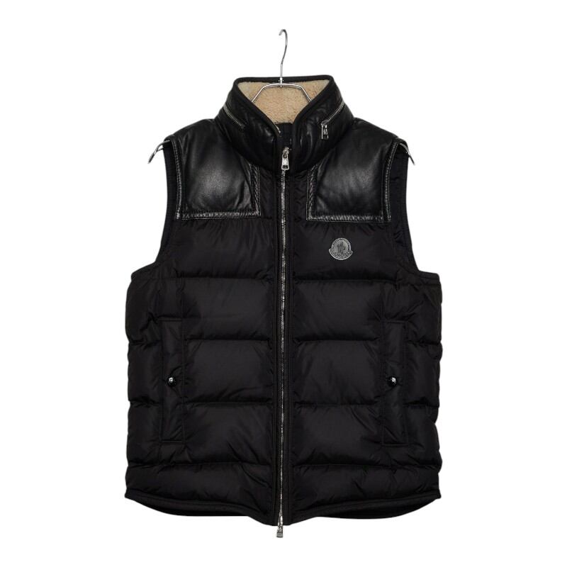 モンクレール ミレー MILLAIS ダウンベスト サイズ1 C20914337585 ブラック ナイロン レザー ダウン/フェザー メンズ MONCLER 【中古】