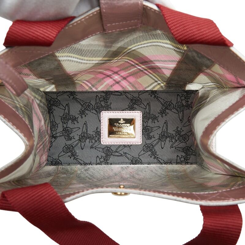 ヴィヴィアンウエストウッド チェック ハンドバッグ ピンク マルチカラー エナメル レザー レディース Vivienne Westwood 【中古】