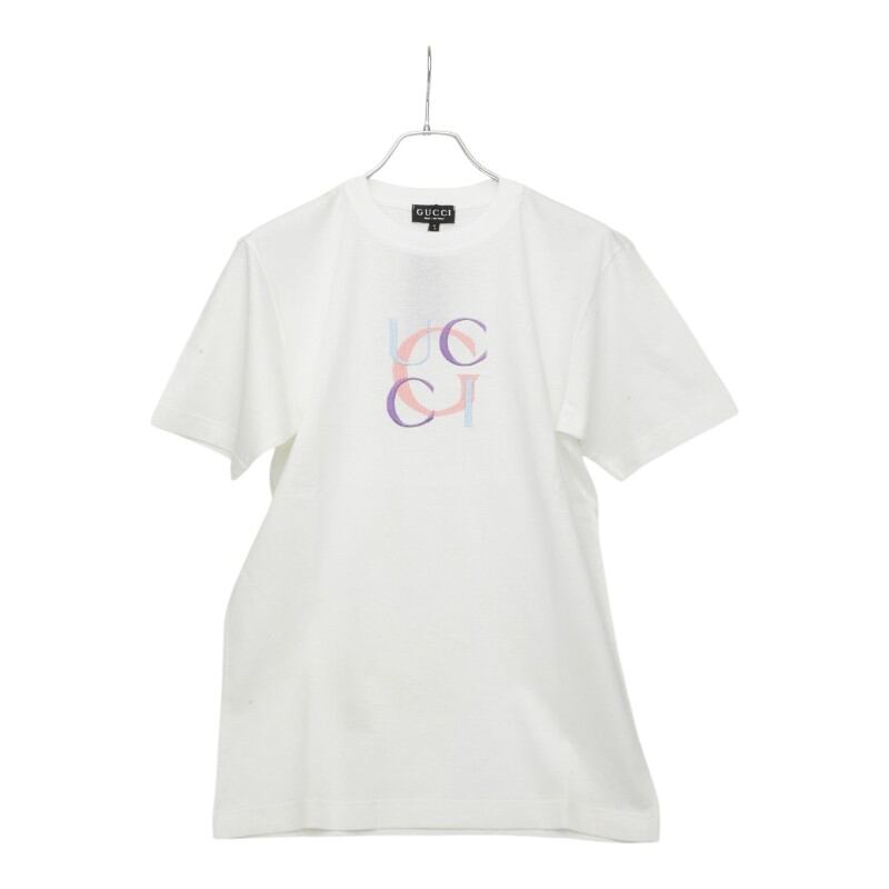グッチ ロゴ 刺繍 Tシャツ サイズ:S ホワイト マルチカラー コットン メンズ GUCCI 【中古】