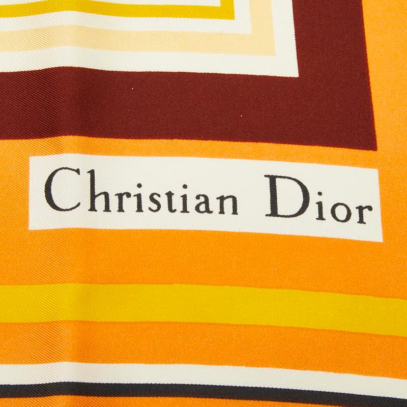 ディオール ロゴ スカーフ オレンジ ブラウン イエロー シルク レディース Dior 【中古】