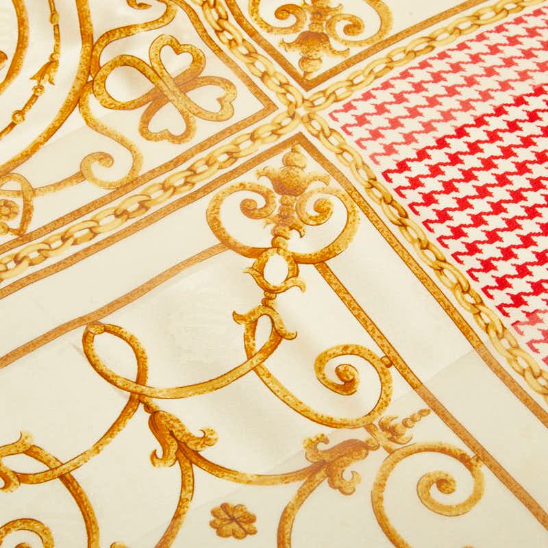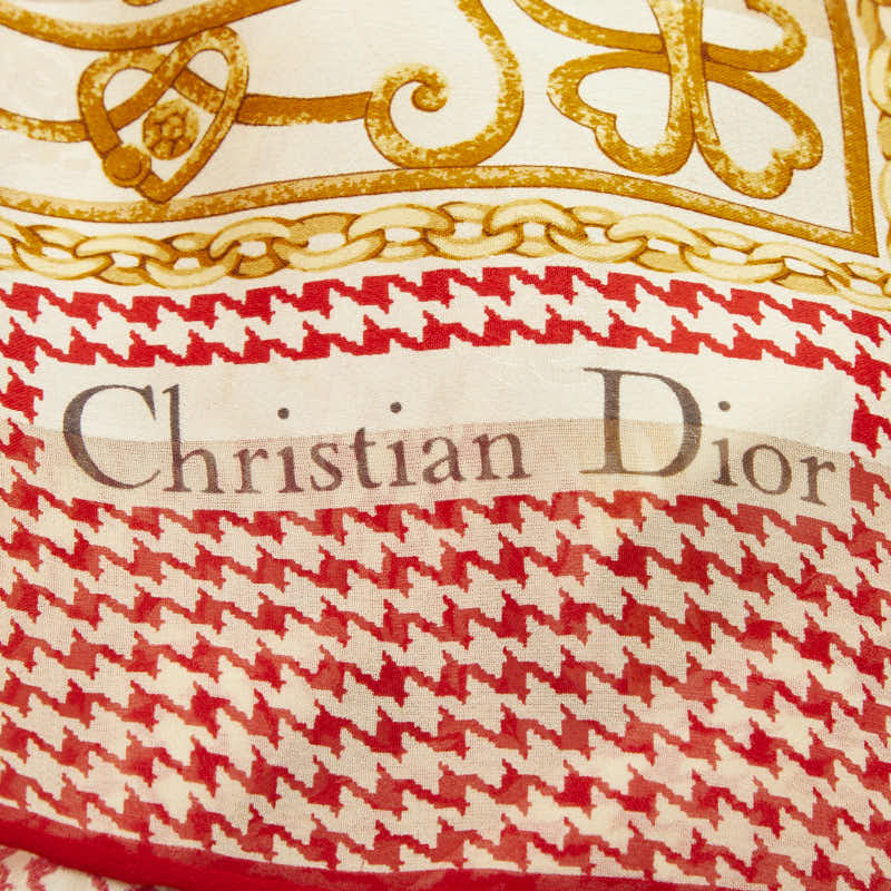 ディオール ヴィンテージ チェーン モチーフ スカーフ レッド アイボリー シルク レディース Dior 【中古】