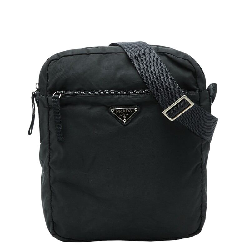 プラダ 三角ロゴプレート 斜め掛け ショルダーバッグ ブラック ナイロン レザー レディース PRADA 【中古】