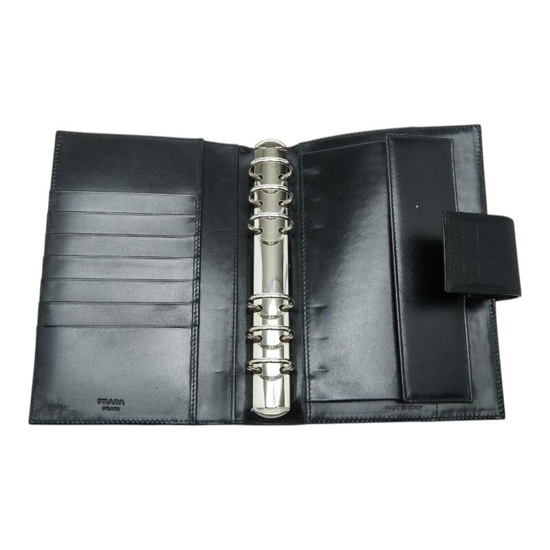 プラダ 三角ロゴプレート - 手帳カバー システム手帳 ブラック ナイロン レザー レディース PRADA 【中古】