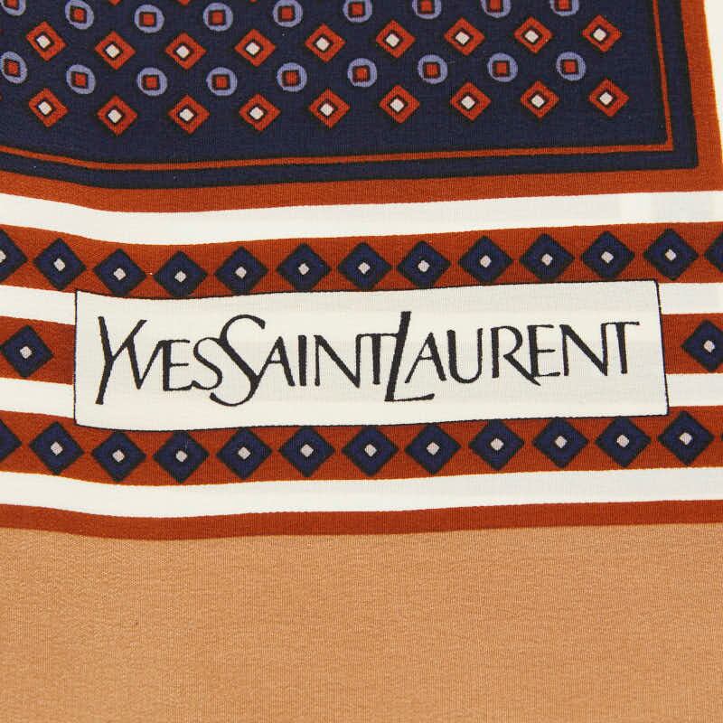 サンローラン ロゴ スカーフ ブラウン ネイビー シルク レディース SAINT LAURENT 【中古】
