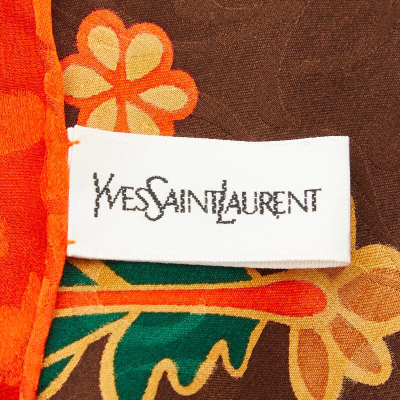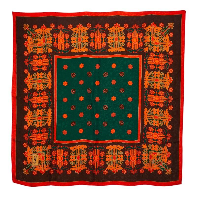 サンローラン YSLロゴ 花 フラワー モチーフ スカーフ レッド シルク レディース SAINT LAURENT 【中古】