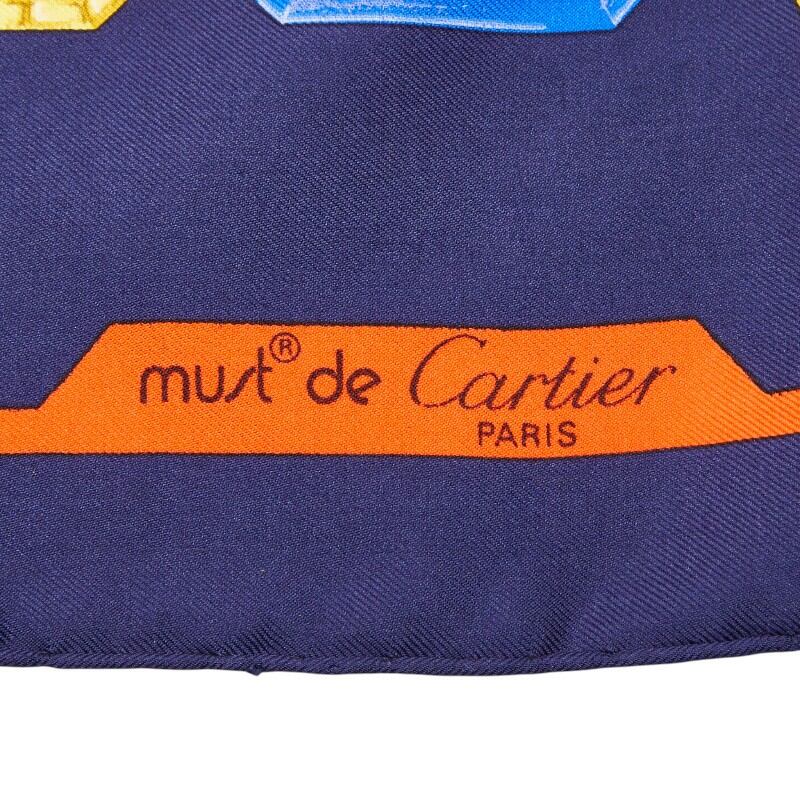 カルティエ ロゴ チェーン ジュエリー モチーフ スカーフ ネイビー レッド レディース CARTIER 【中古】