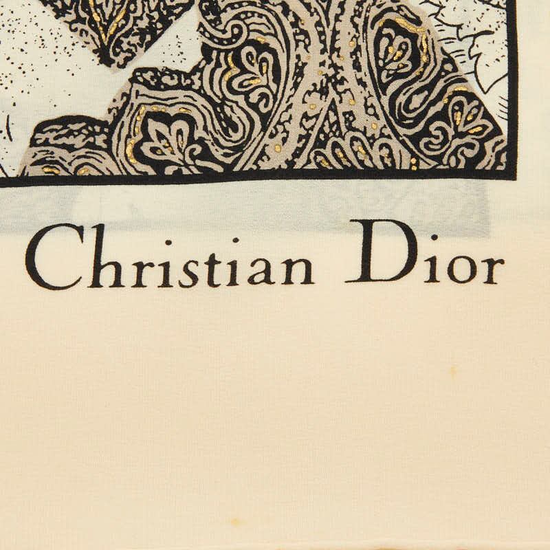 ディオール ペイズリー柄 大判 スカーフ アイボリー グレー ゴールド シルク レディース Dior 【中古】