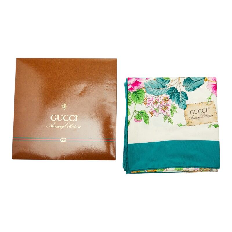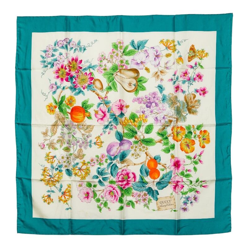 グッチ 果物 花 フルーツ フラワー モチーフ スカーフ グリーン マルチカラー シルク レディース GUCCI 【中古】