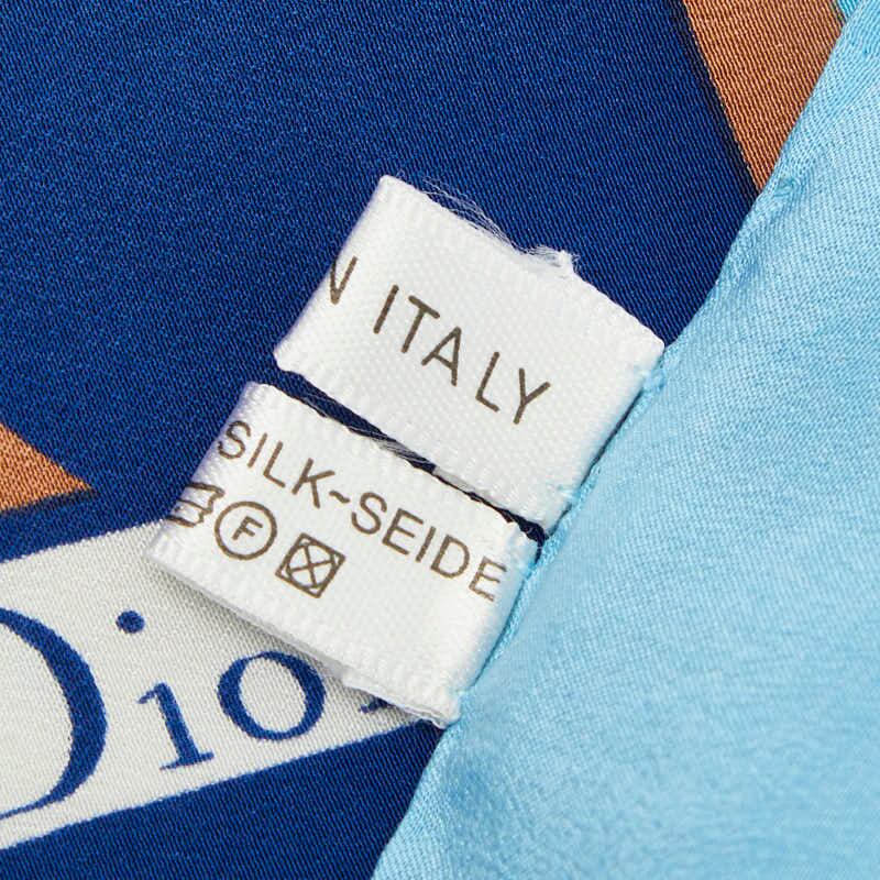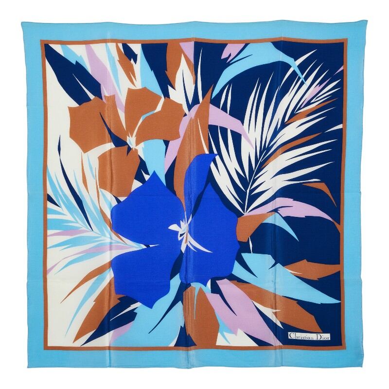 ディオール フラワーモチーフ スカーフ ブルー ベージュ シルク レディース Dior 【中古】