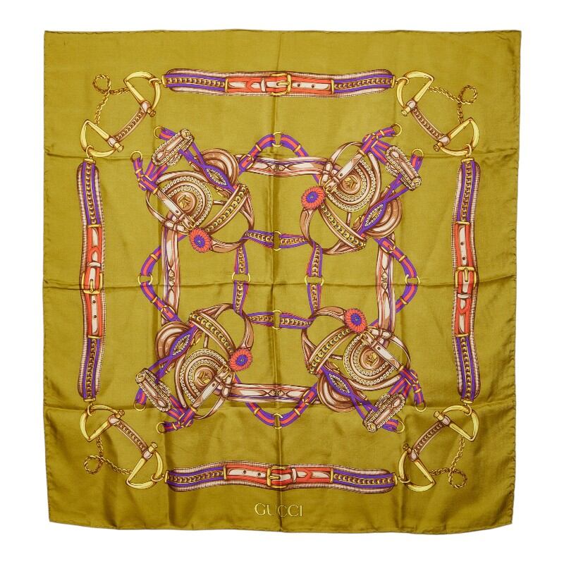グッチ ベルト チェーン モチーフ スカーフ カーキグリーン マルチカラー シルク レディース GUCCI 【中古】