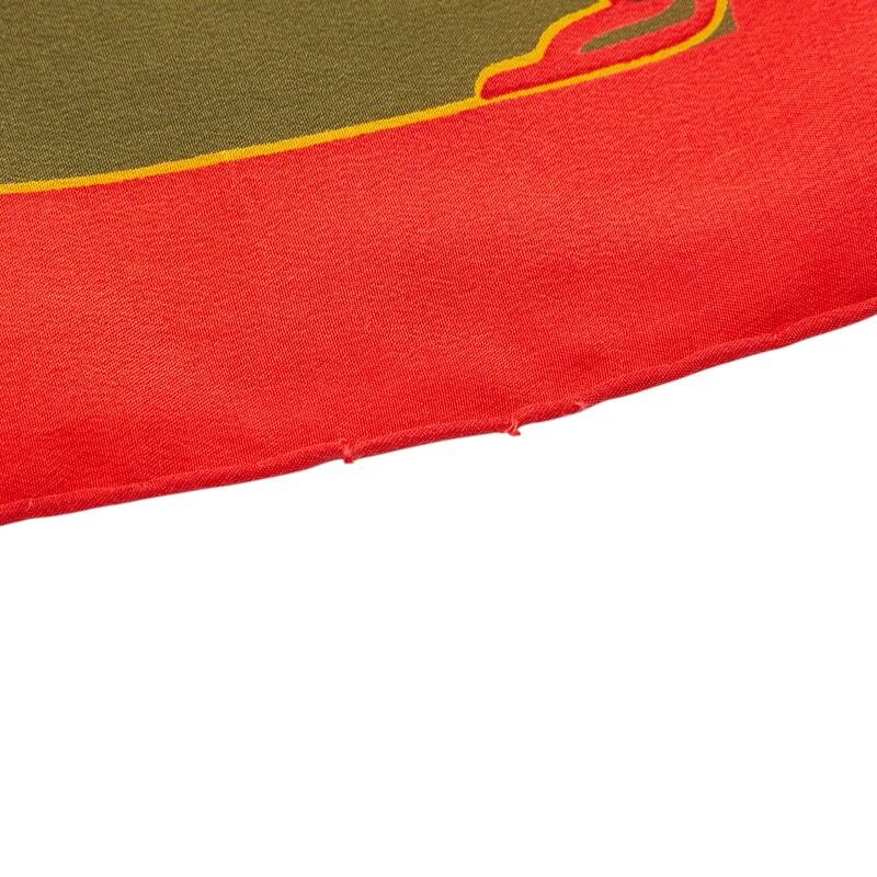 カルティエ パンテール ロゴ ヒョウ リング モチーフ スカーフ カーキグリーン シルク レディース CARTIER 【中古】