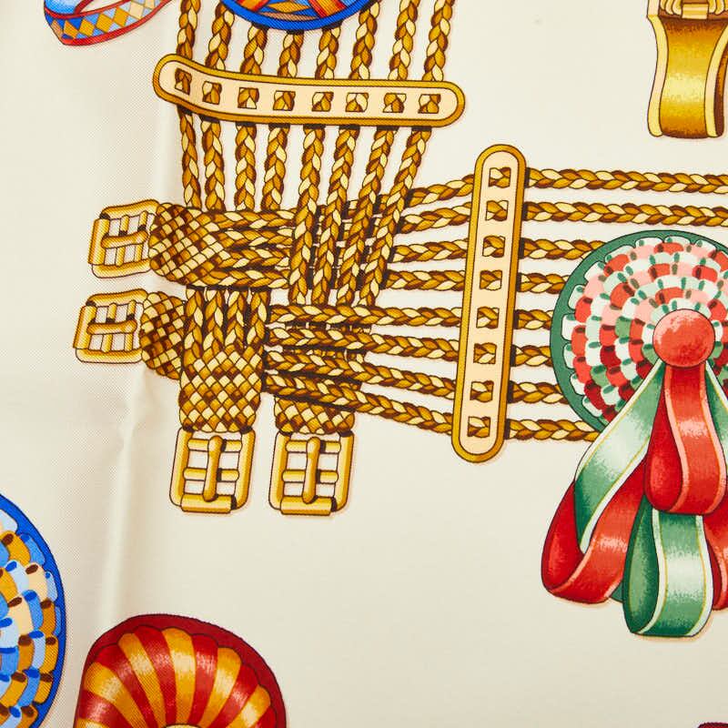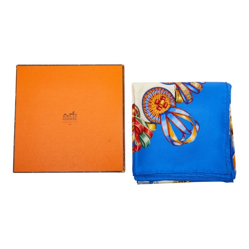 エルメス カレ90 LES RUBANS DU CHEVAL 馬のリボン スカーフ マルチカラー ブルー シルク レディース HERMES 【中古】