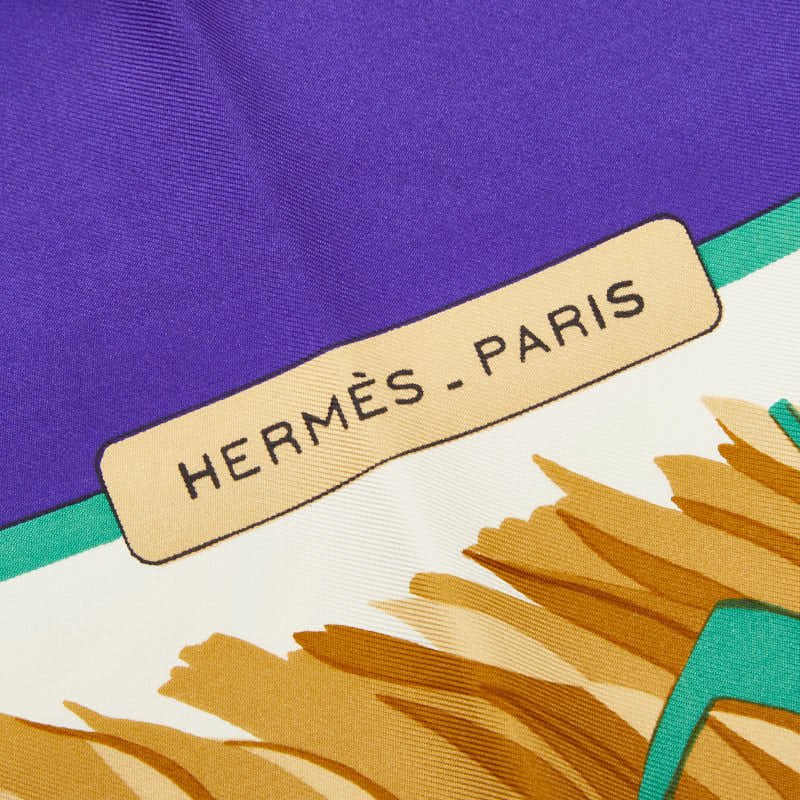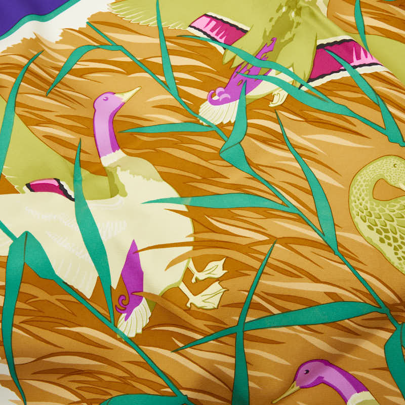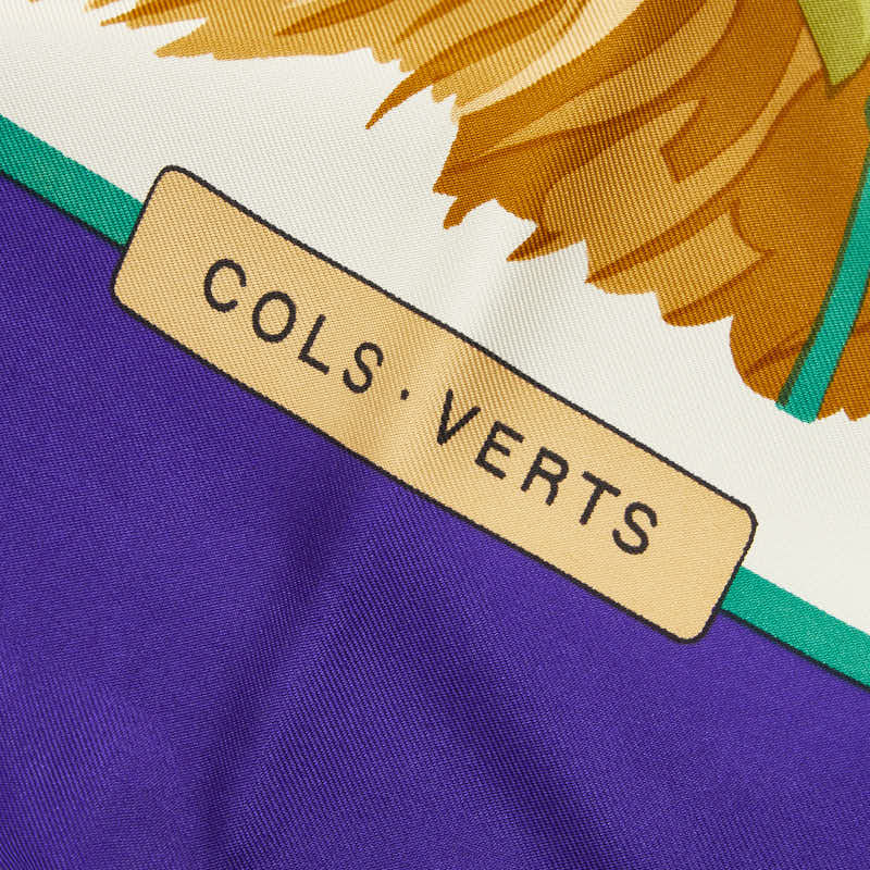 エルメス COLS VERTS マガモ 鴨 鳥 スカーフ パープル 紫 ベージュ シルク レディース HERMES 【中古】