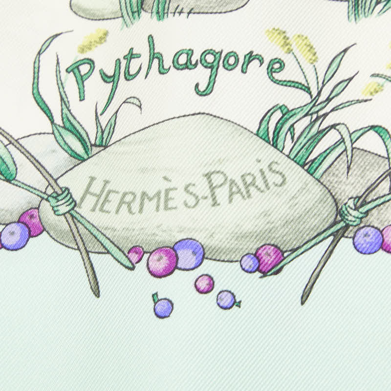 エルメス カレ90 Pythagore ピタゴラス スカーフ グリーン シルク レディース HERMES 【中古】