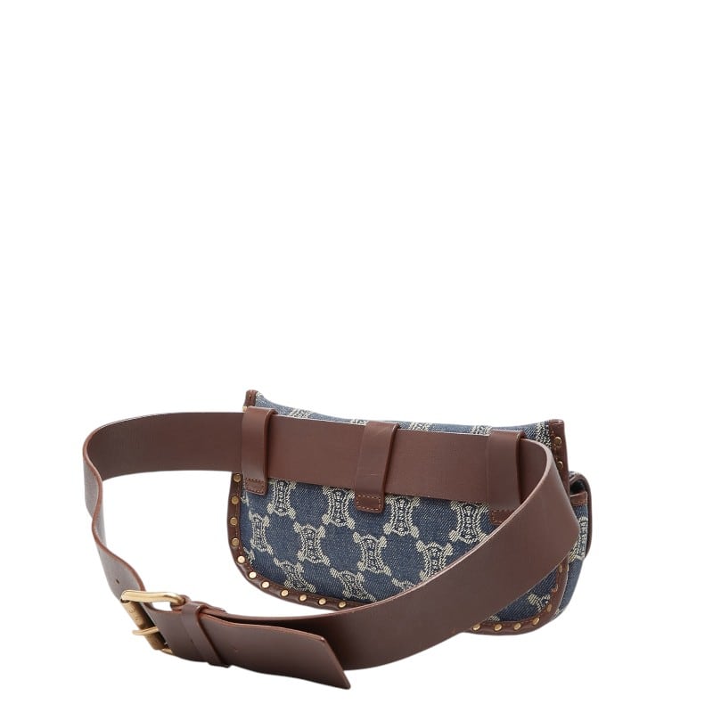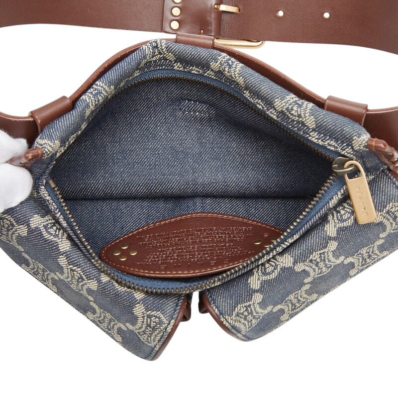 セリーヌ パリマカダム ボディバッグ ウエストポーチ ブルー ブラウン デニム レザー レディース CELINE 【中古】