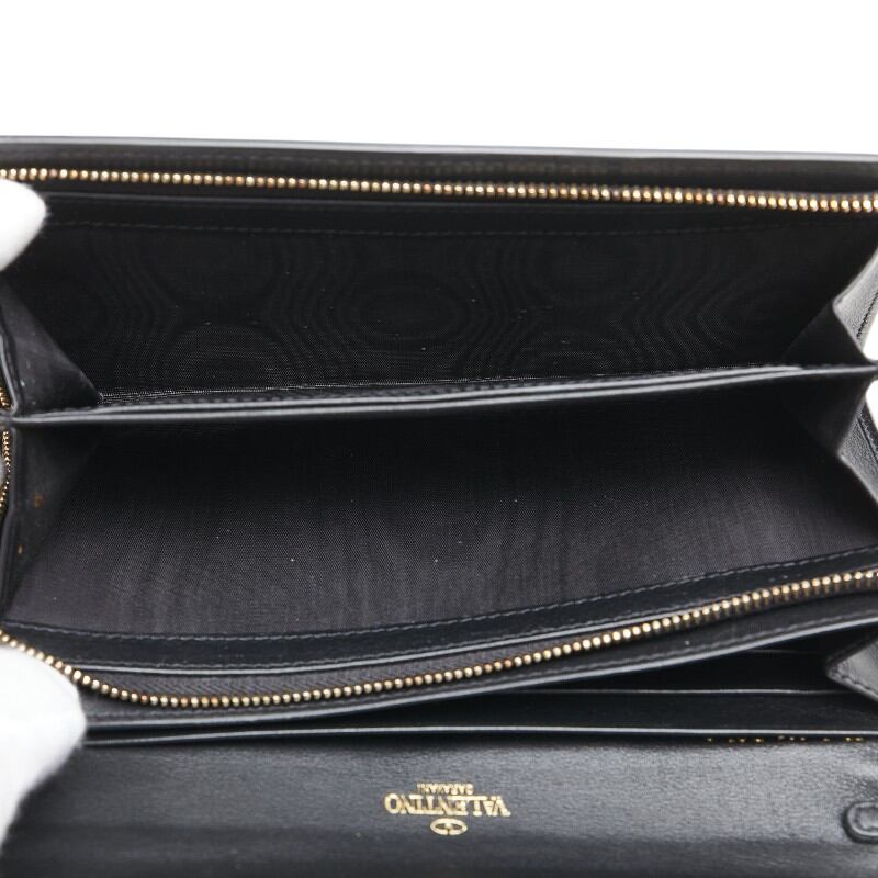 ヴァレンティノ ロックスタッズ 長財布 ブラック ゴールド レザー レディース VALENTINO 【中古】