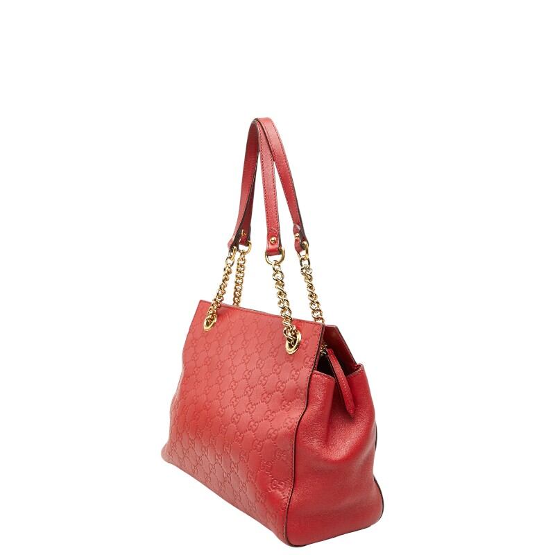 グッチ グッチシマ チェーン トートバッグ 453773 レッド レザー レディース GUCCI 【中古】