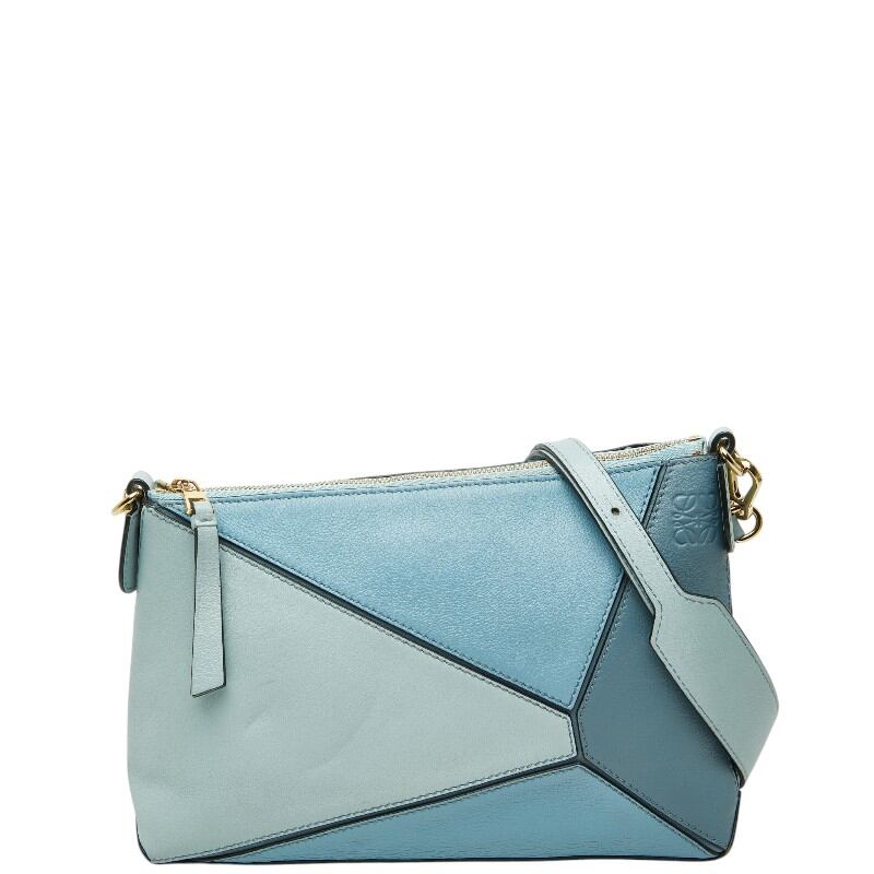 ロエベ アナグラム パズル ショルダーバッグ ブルー レザー レディース LOEWE 【中古】