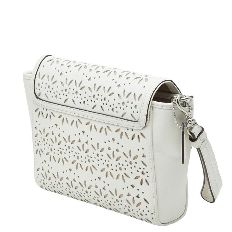 コーチ テイラー アイレット クラッチバッグ ホワイト レザー レディース COACH 【中古】