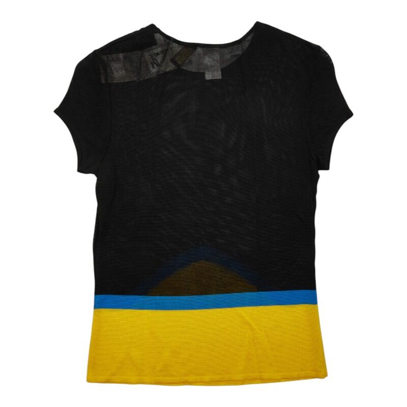ヴェルサーチェ メッシュ ニット トップ 半袖 サイズ42 ブラック イエロー ブルー レーヨン レディース VERSACE 【中古】