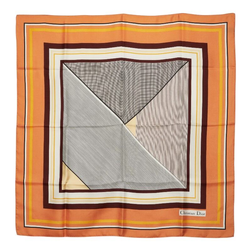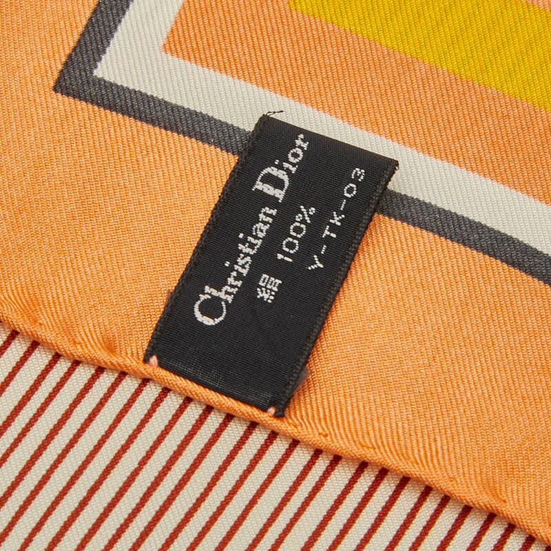 ディオール ロゴ スカーフ オレンジ ブラウン イエロー シルク レディース Dior 【中古】