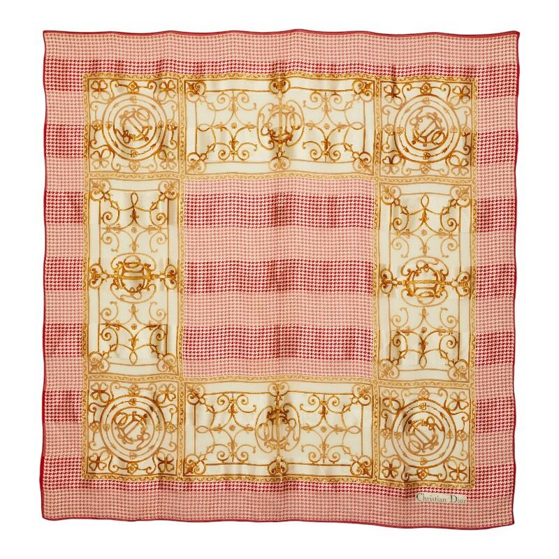 ディオール ヴィンテージ チェーン モチーフ スカーフ レッド アイボリー シルク レディース Dior 【中古】