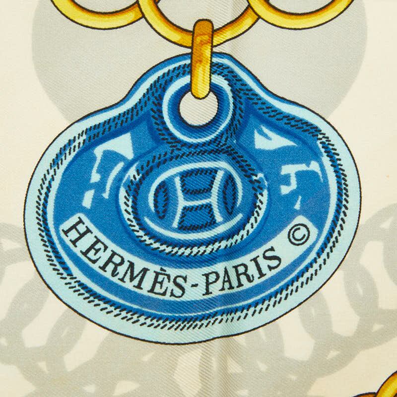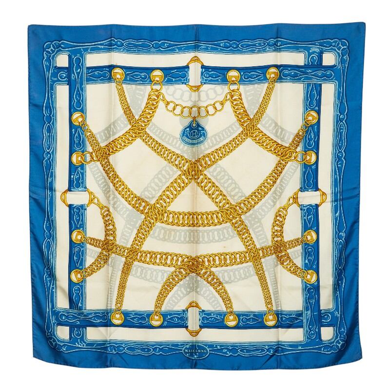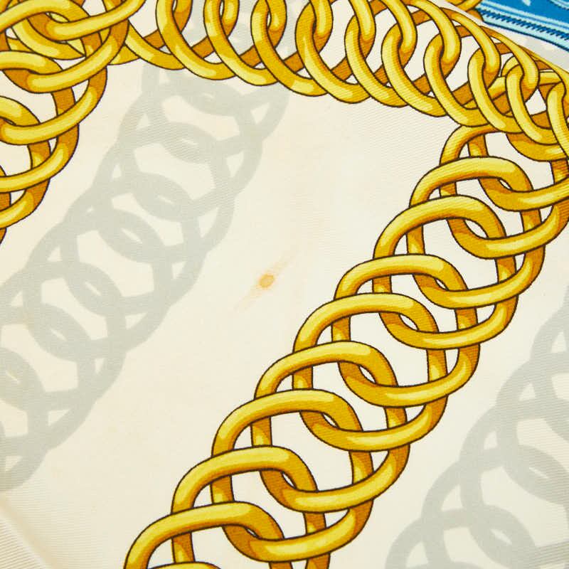 エルメス カレ90 MAILLONS 鎖の環 スカーフ ブルー ホワイト イエロー シルク レディース HERMES 【中古】