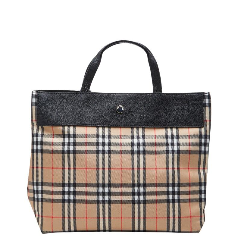 バーバリー ノバチェック ハンドバッグ トートバッグ ベージュ ブラック ナイロン レザー レディース BURBERRY 【中古】