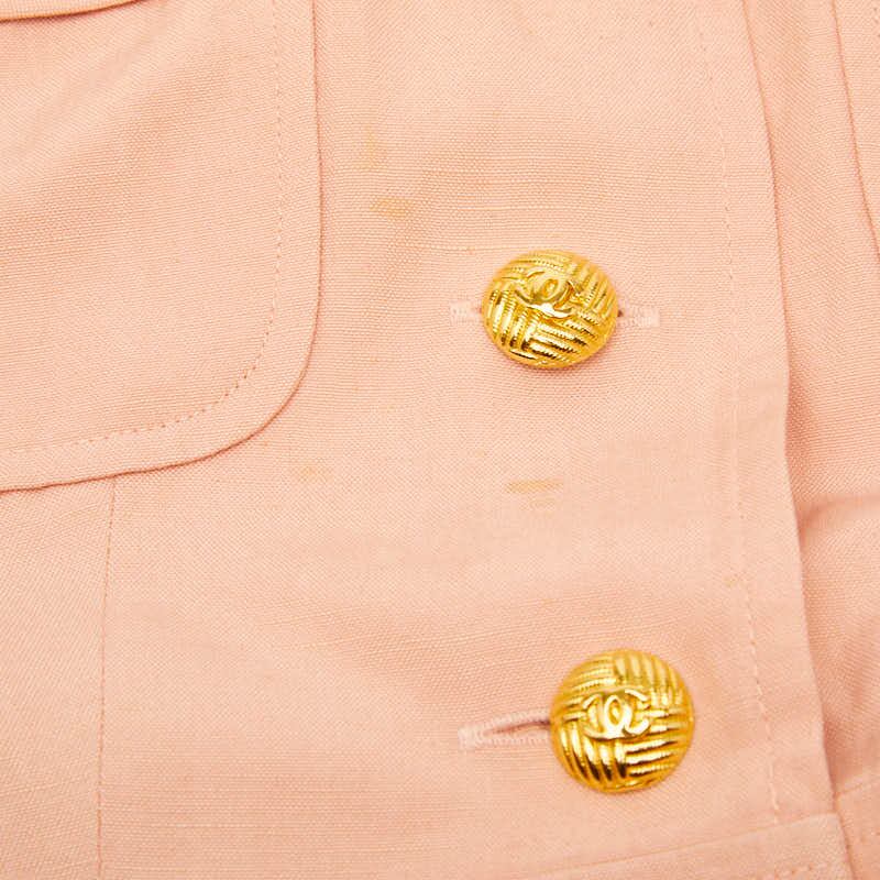 シャネル ブティック ココマーク セットアップ 4ポケット ジャケット ショートパンツ サイズ 36 ピンクベージュ シルク リネン レディース CHANEL 【中古】