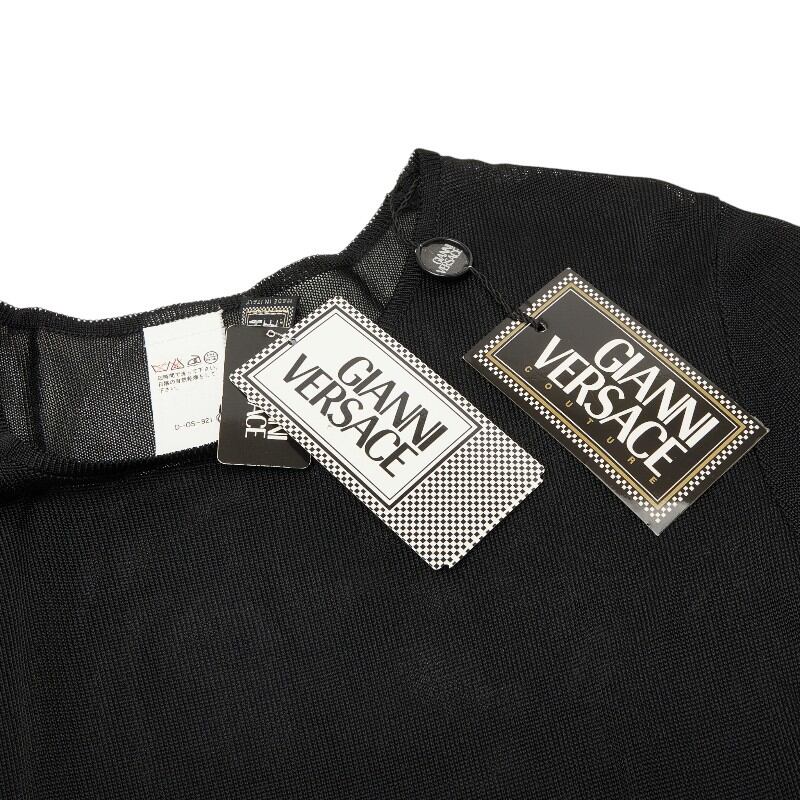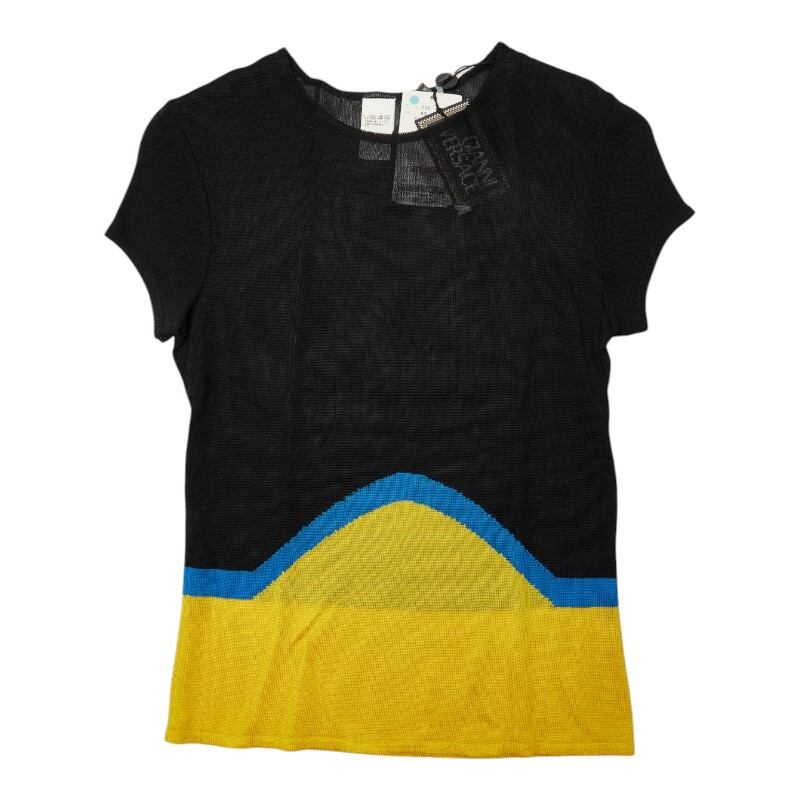 ヴェルサーチェ メッシュ ニット トップ 半袖 サイズ42 ブラック イエロー ブルー レーヨン レディース VERSACE 【中古】