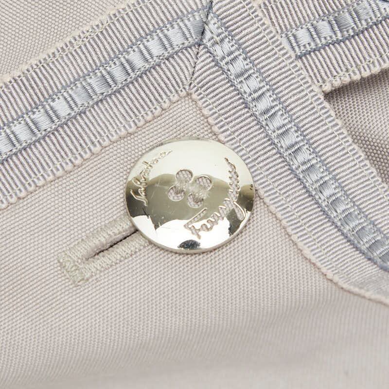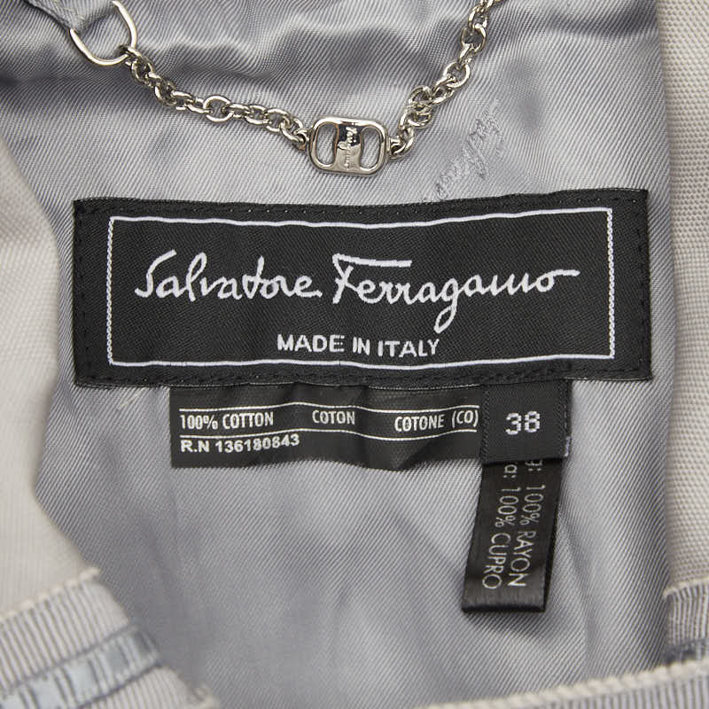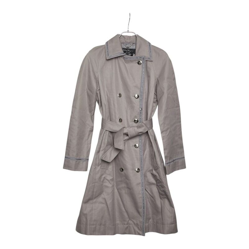 サルヴァトーレフェラガモ ヴァラ ダブルブレスト パイピング トレンチコート サイズ 38 グレー コットン レーヨン レディース Salvatore Ferragamo 【中古】