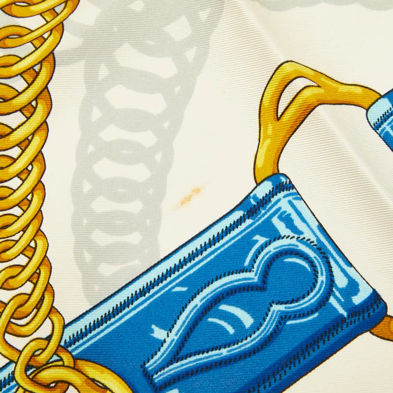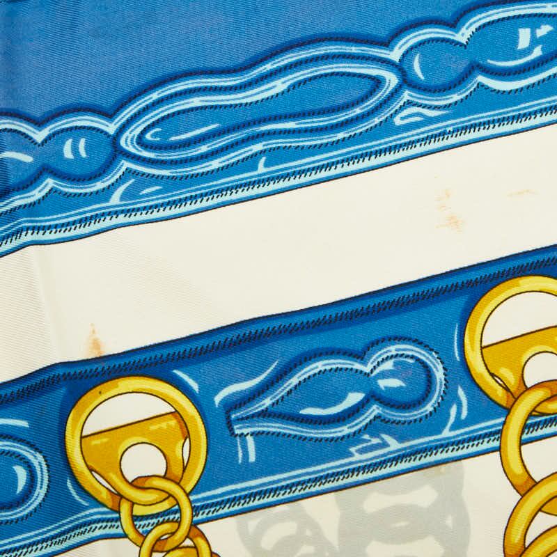 エルメス カレ90 MAILLONS 鎖の環 スカーフ ブルー ホワイト イエロー シルク レディース HERMES 【中古】