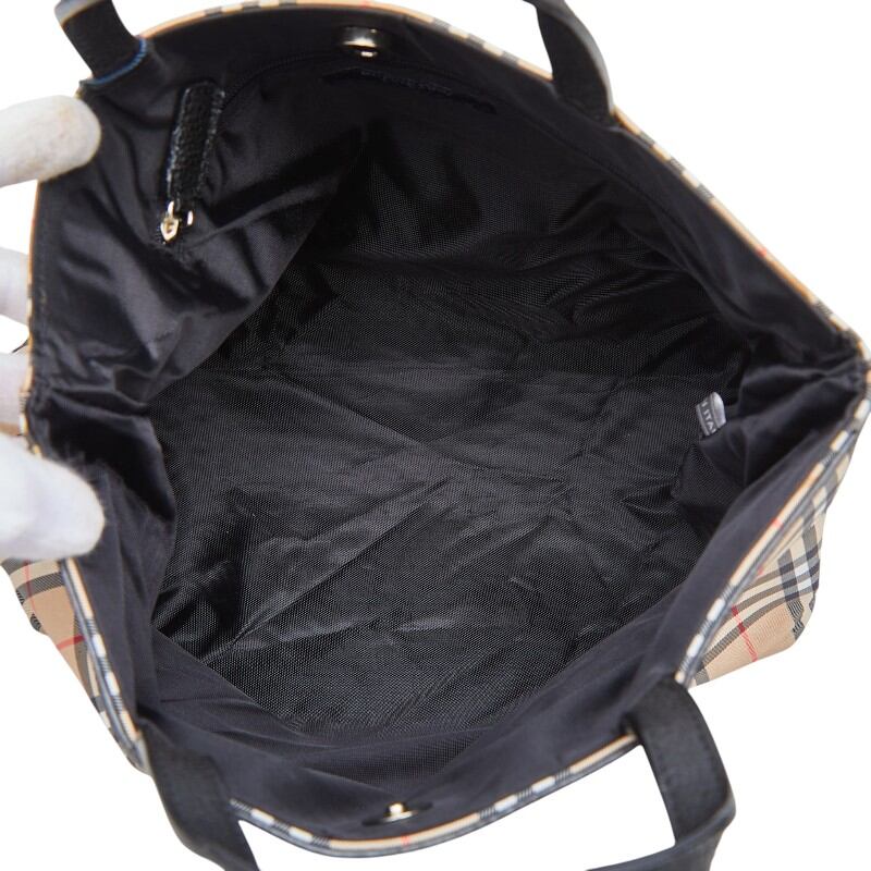 バーバリー ノバチェック ハンドバッグ トートバッグ ベージュ ブラック ナイロン レザー レディース BURBERRY 【中古】