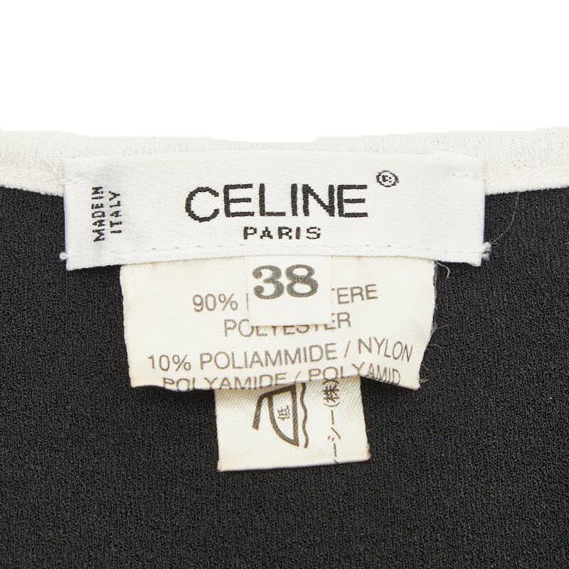 セリーヌ ロゴ タンクトップ キャミソール ノースリーブ サイズ:38 ブラック ホワイト ポリエステル ナイロン レディース CELINE 【中古】