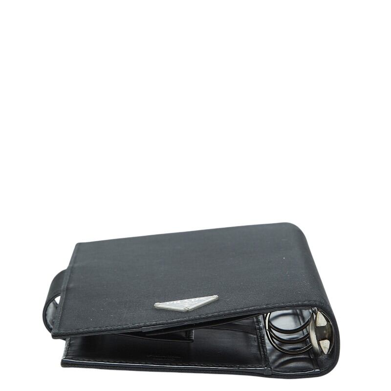 プラダ 三角ロゴプレート - 手帳カバー システム手帳 ブラック ナイロン レザー レディース PRADA 【中古】