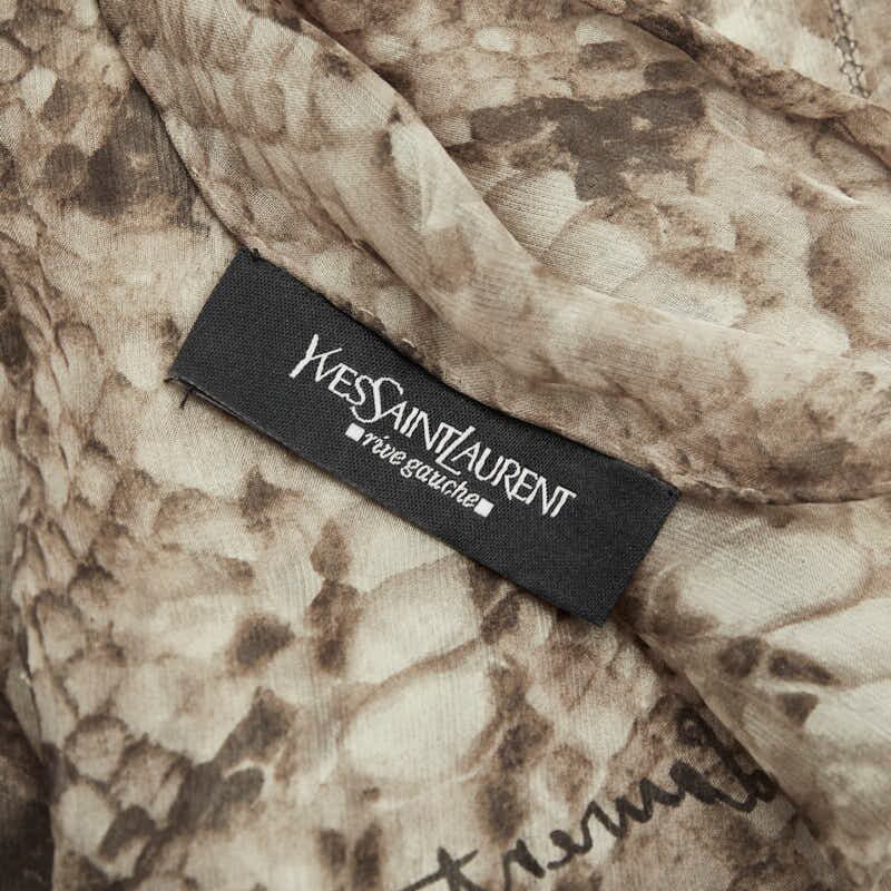 サンローラン パイソン柄 スカーフ グレー ベージュ系 シルク レディース SAINT LAURENT 【中古】