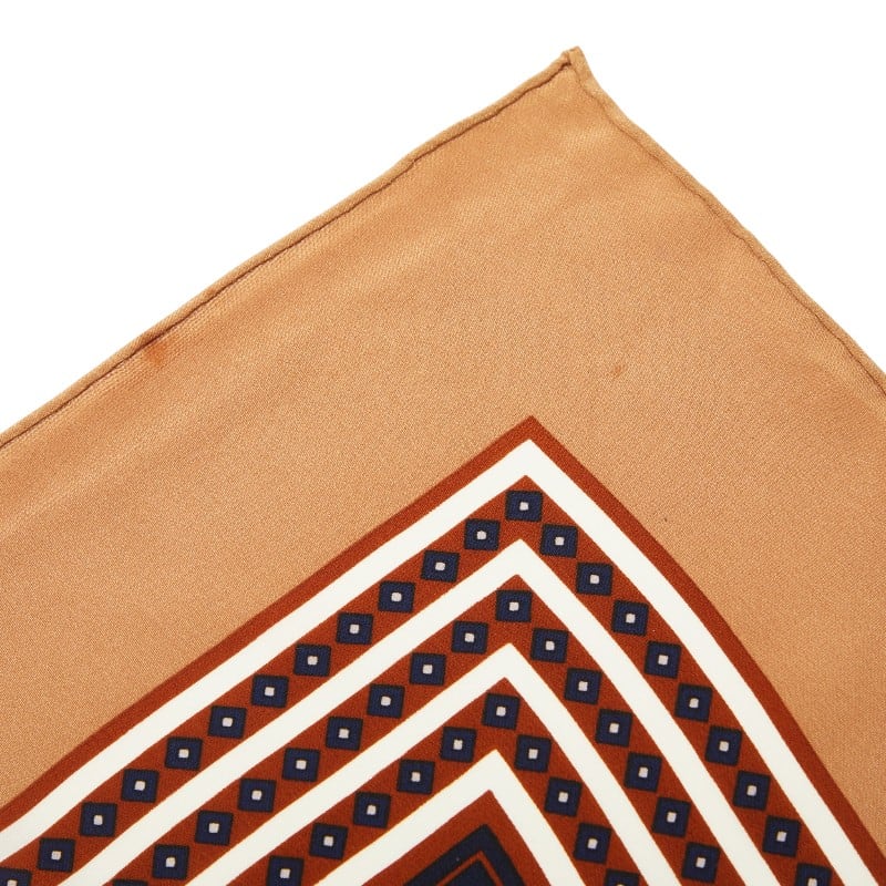 サンローラン ロゴ スカーフ ブラウン ネイビー シルク レディース SAINT LAURENT 【中古】
