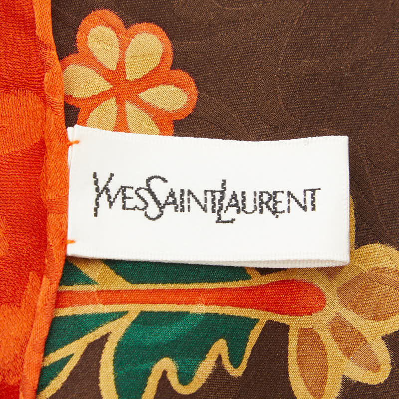 サンローラン YSLロゴ 花 フラワー モチーフ スカーフ レッド シルク レディース SAINT LAURENT 【中古】