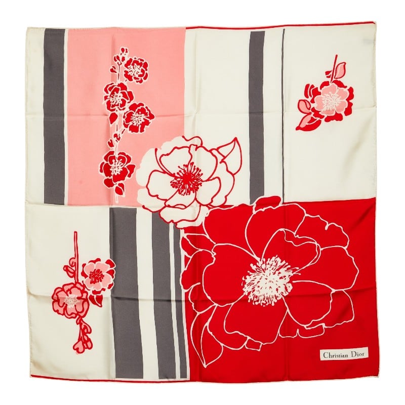ディオール スカーフ レッド シルク レディース Dior 【中古】