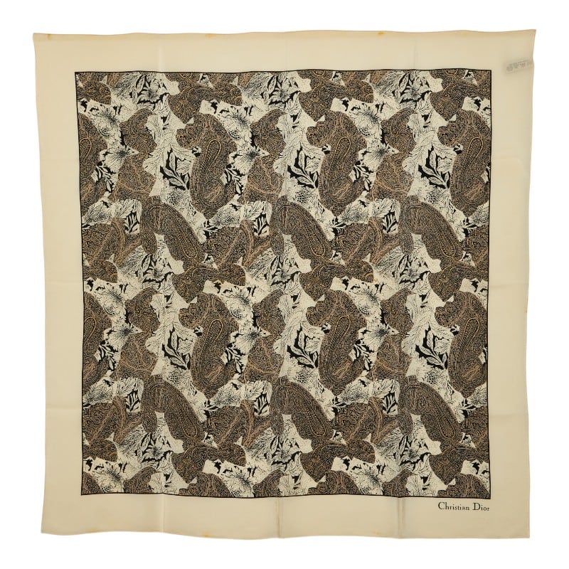 ディオール ペイズリー柄 大判 スカーフ アイボリー グレー ゴールド シルク レディース Dior 【中古】