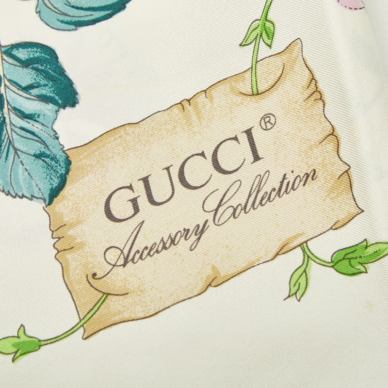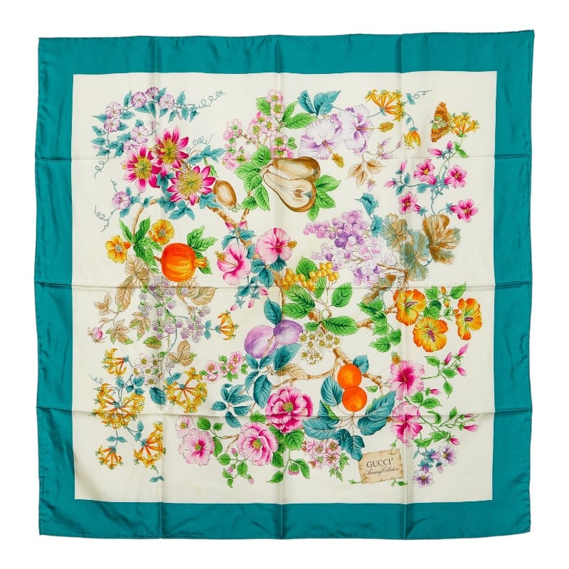 グッチ 果物 花 フルーツ フラワー モチーフ スカーフ グリーン マルチカラー シルク レディース GUCCI 【中古】
