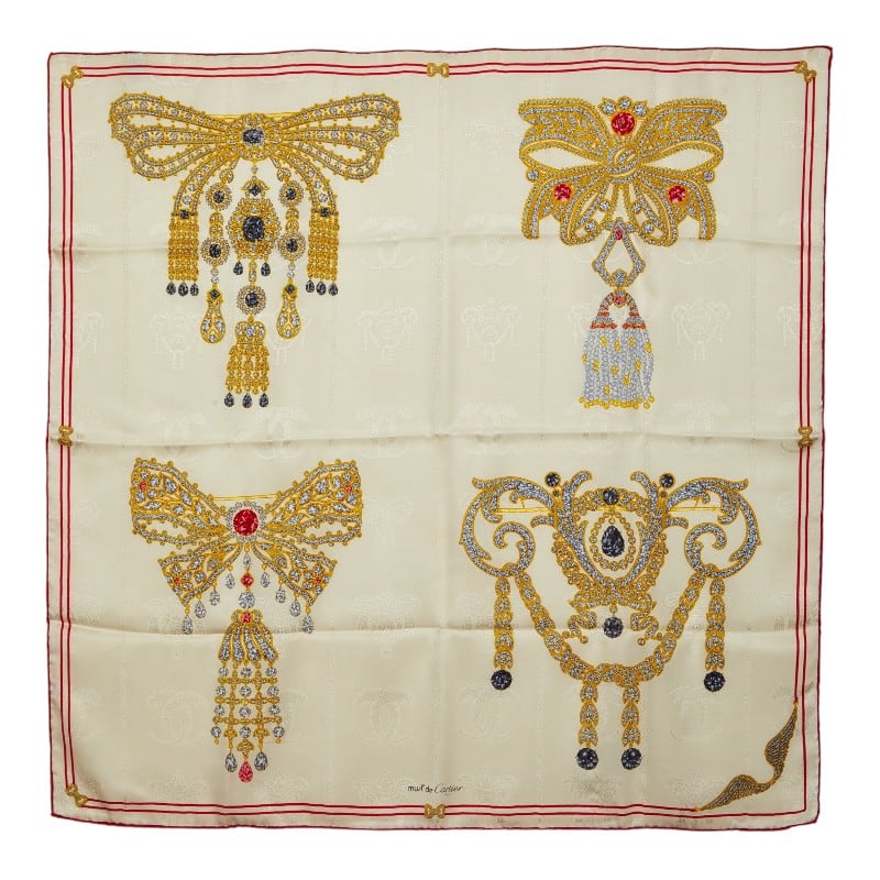 カルティエ リボン ブローチ ジュエリー モチーフ スカーフ ホワイト シルク レディース CARTIER 【中古】
