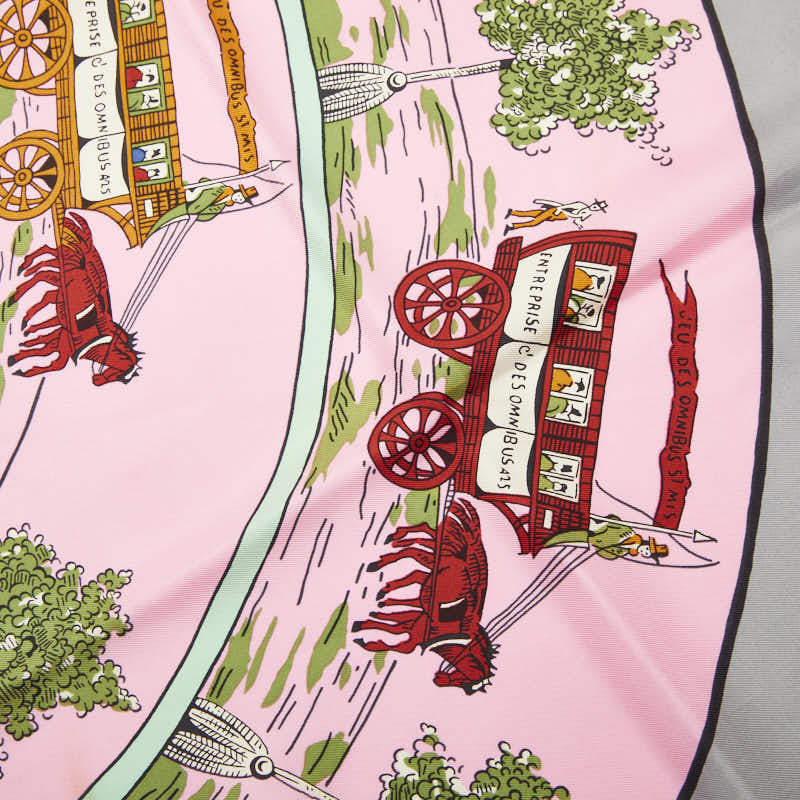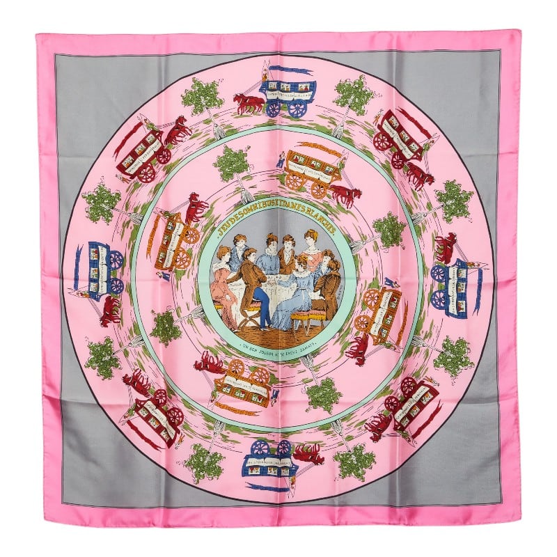 エルメス カレ90 JEU DES OMNIBUS ET DAMES BLANCHES オムニバスと貴婦人のゲーム スカーフ ピンク シルク レディース HERMES 【中古】