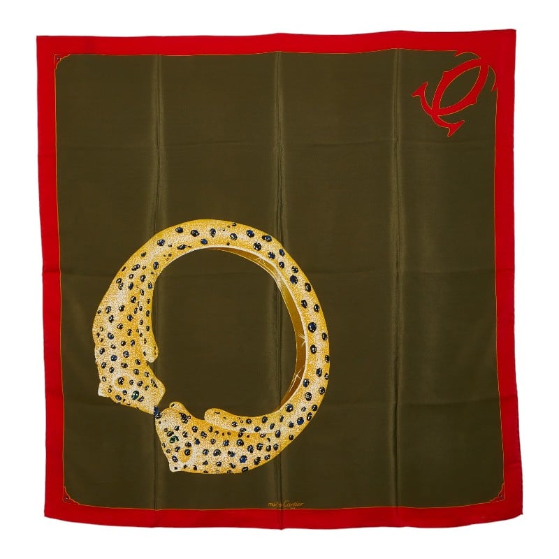 カルティエ パンテール ロゴ ヒョウ リング モチーフ スカーフ カーキグリーン シルク レディース CARTIER 【中古】