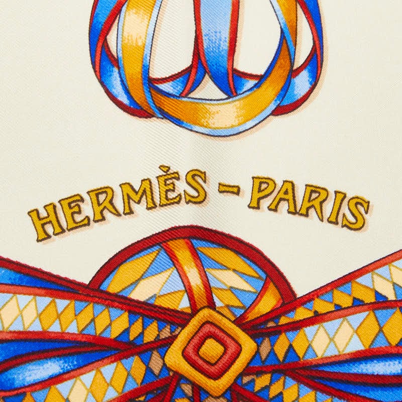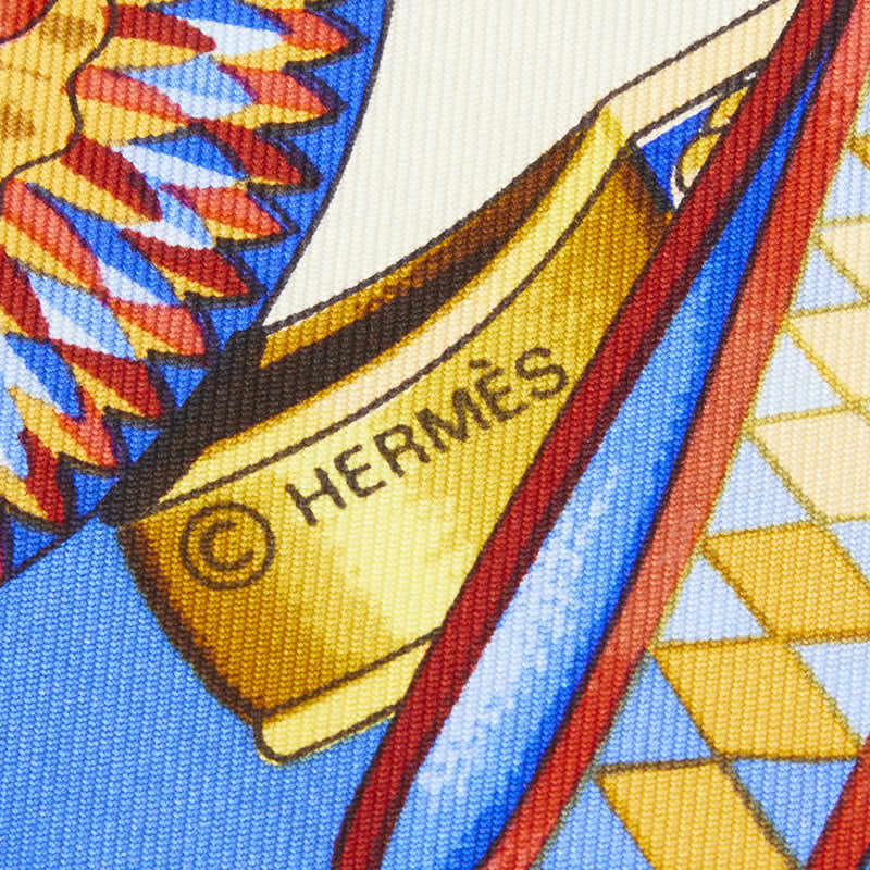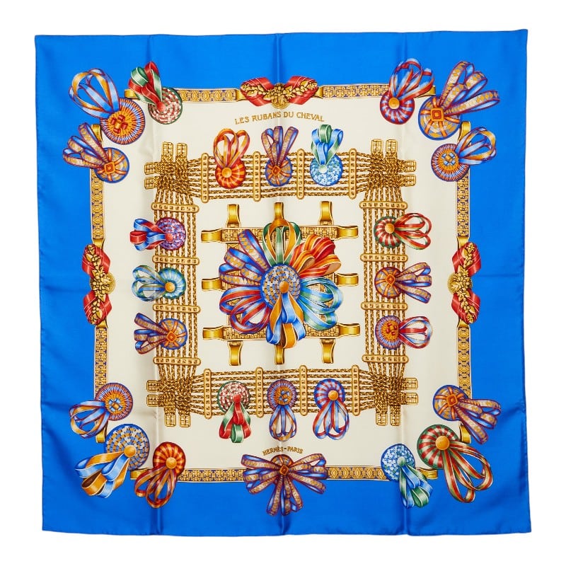エルメス カレ90 LES RUBANS DU CHEVAL 馬のリボン スカーフ マルチカラー ブルー シルク レディース HERMES 【中古】