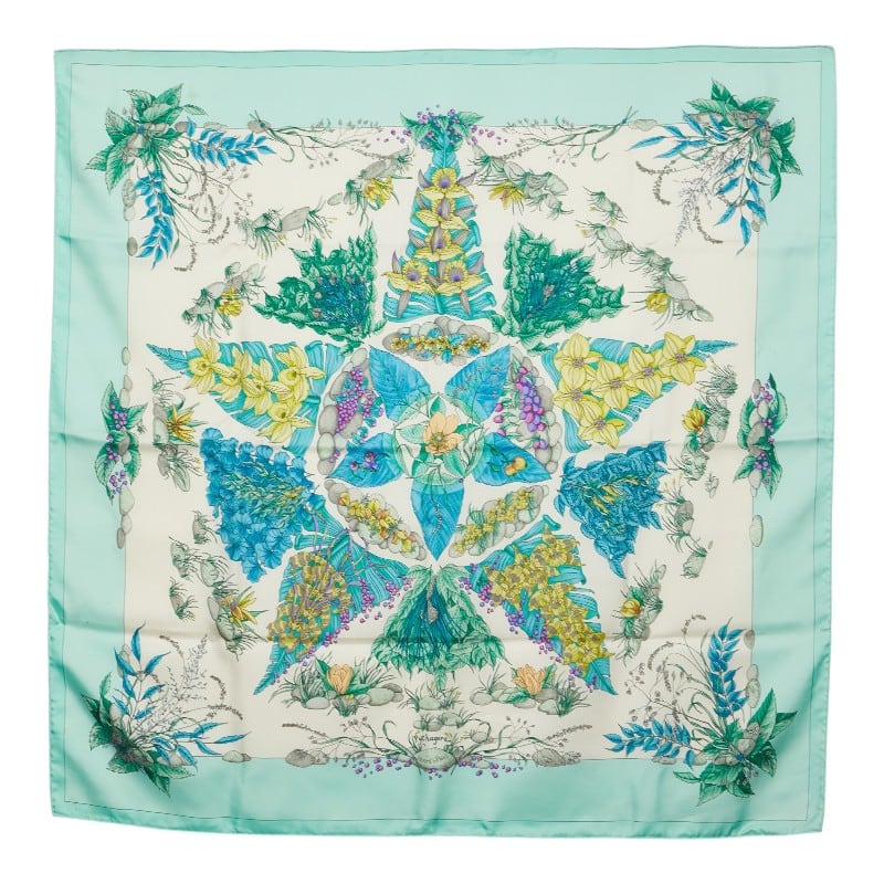 エルメス カレ90 Pythagore ピタゴラス スカーフ グリーン シルク レディース HERMES 【中古】