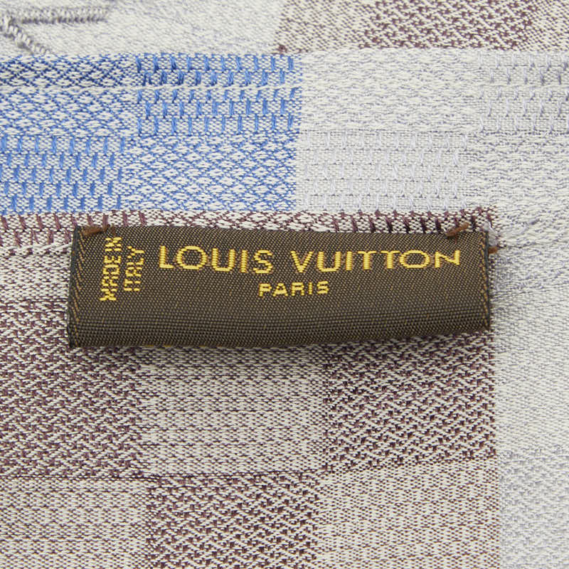 ルイ ヴィトン ダミエ 大判スカーフ ストール 401910 ブラウン ゴールド シルク ウール レディース LOUIS VUITTON 【中古】