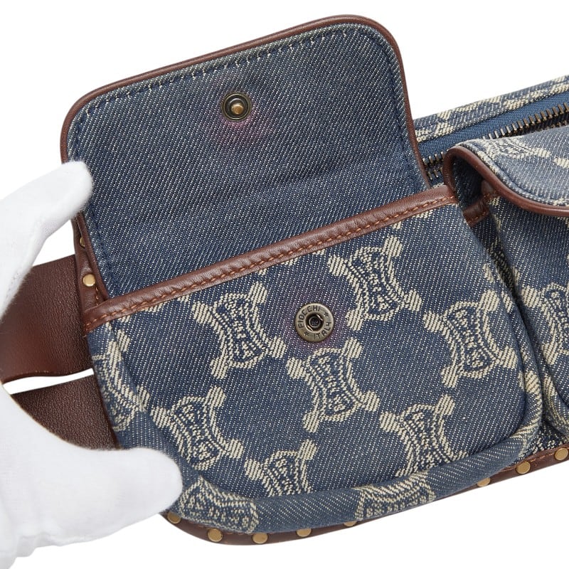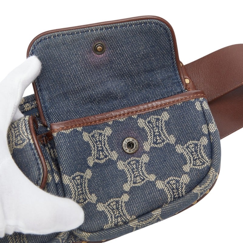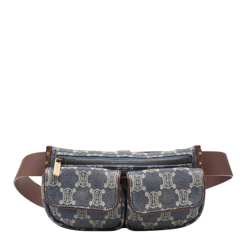 セリーヌ パリマカダム ボディバッグ ウエストポーチ ブルー ブラウン デニム レザー レディース CELINE 【中古】