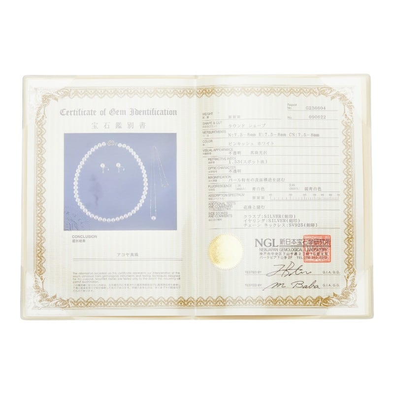 シルバー ピンキッシュホワイト SV925 シルバー アコヤパール7.5~8mm アコヤ花珠真珠 ネックレス レディース 【中古】